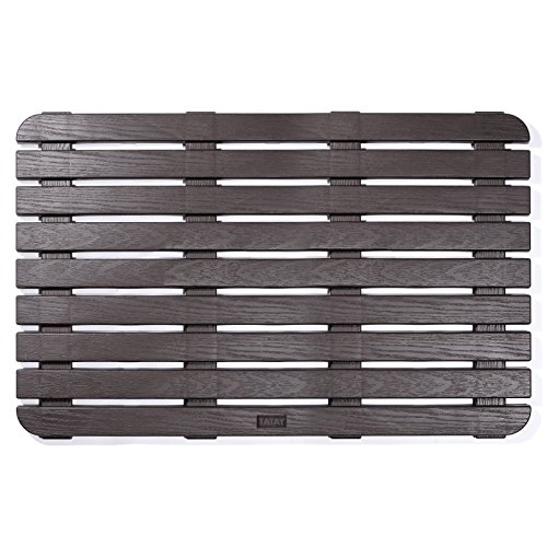 Tatay Pedana Doccia Quadrata, in Polipropilene, Finitura Effetto Legno, Antiscivolo, Protezione Solare, Con Borchie In Gomma, Marrone (Scuro), Misure 80 x 50 cm
