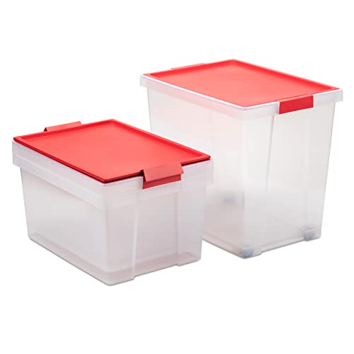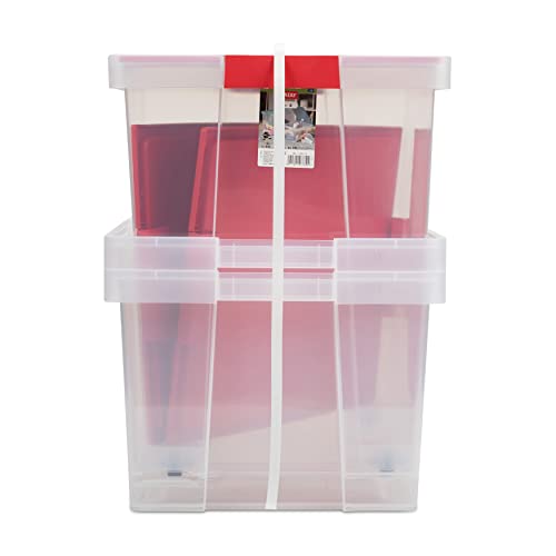 TATAY Set di 3 Scatole con Coperchio, 2 x 35L, 1 x 60L, con Maniglie, Coperchio 100% Materiali Riciclati, senza BPA, Trasparente, Rosso. Dimensioni 37 x 50,5 x 48,7 cm