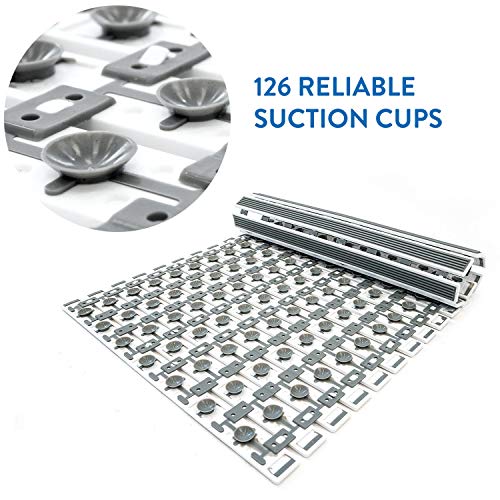 SICURO: ci sono ventose in PVC sul fondo del prodotto per un fissaggio forte e sicuro, 114 ventose aderiscono saldamente dopo una pressione e non si sposteranno quando si calpesta il tappetino