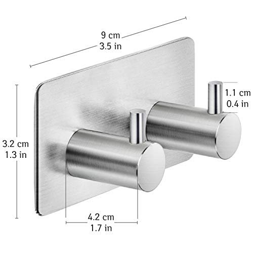 Tatkraft Mia Doppio Gancio Autoadesivo Portasciugamani, Accappatoio, Appendiabiti in Acciaio Inox