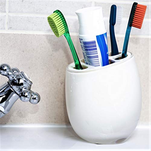 Tatkraft Repose Porta Spazzolini da Appoggio - Bicchiere Portaspazzolini con 3 Scomparti per Spazzolini e Uno per Dentifricio, Bianco