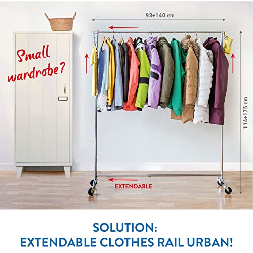 Tatkraft Urban - Robusto Stand Appendiabiti su Ruote per Carichi Pesanti, Design Salvaspazio, Regolabile in Altezza e Lunghezza