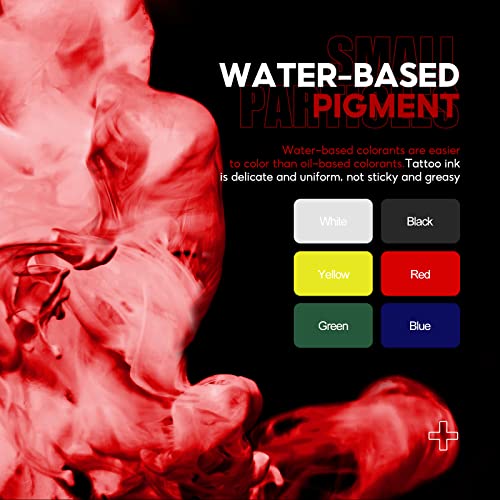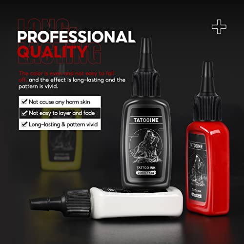 Tatooine Set di Inchiostri per Tatuaggi 6 * 20ml, 120ml Totale, Inchiostro Liquido a Pigmento Semipermanente per Tatuaggi Nero Bianco Giallo Rosso e Azzuro, Inchiostro per Tatuaggi per Skin Body Art