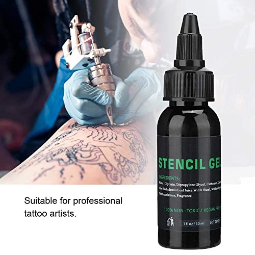 NESSUNA IRRITAZIONE ALLA PELLE: Soddisfa gli standard di sicurezza rigida e materiali non tossici, nessuna irritazione per la pelle. È l'industria dei tatuaggi che fornisce i migliori materiali di trasferimento, nessun danno al corpo umano. 30 ml di contenuto netto, dimensioni compatte e conveneint da utilizzare.