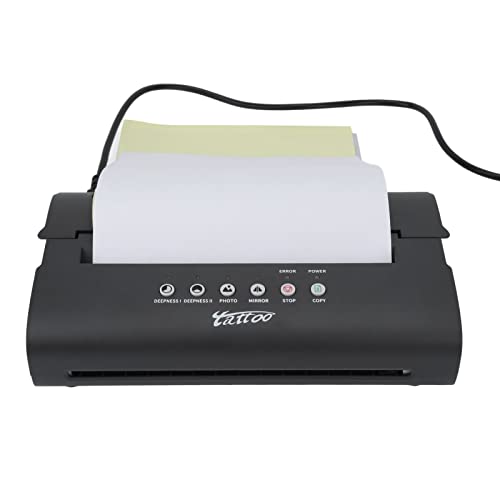 MANTIENI LA CARTA NUOVA - La stampante per fotocopiatrice a trasferimento di tatuaggi ha adottato un design unico, facile da aprire e chiudere il coperchio della carta, mantenendo la carta pulita in modo efficace, aiuta i tatuatori a realizzare bellissimi tatuaggi.