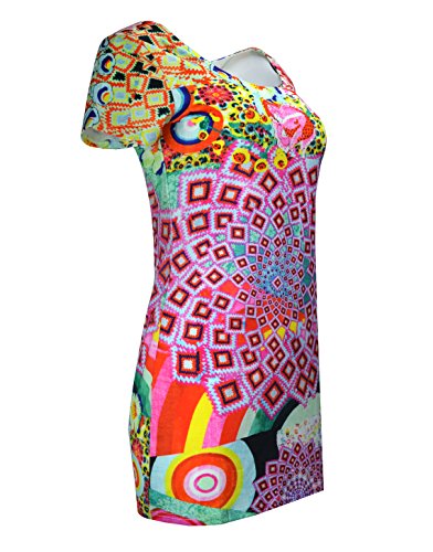TATTOPANI Abito a Manica Corta delle Donne con Multicolore Stampa Motivo Floreale e Strass...