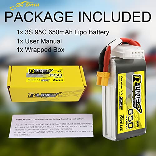 TATTU TA-RL-95C-650-3S1P - Batteria per modellismo (LiPo), 11,1 V, 650 mAh, numero celle: 3 95 C, custodia morbida
