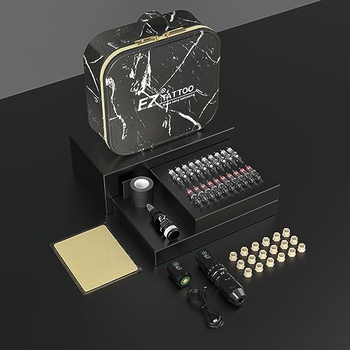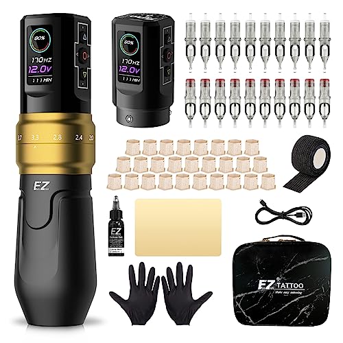 EZ Kit per Tatuaggi - Kit Macchina per Tatuaggi Completo con 6 Corse 2,0-4,2 mm Penna per Macchina Tatuaggio Senza Fili con Alimentazione a Batteria da 1600mAh (P3 PRO Oro Opaco)
