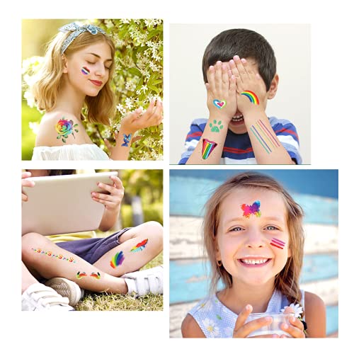Tatuaggi Temporanei per Bambini, 9 Fogli Tatuaggi Set de Arcobaleno, Tatuaggi Finti temporanei Adesivi, Tatuaggi Finti per Ragazze Ragazzi, Tatuaggi per feste costume di halloween