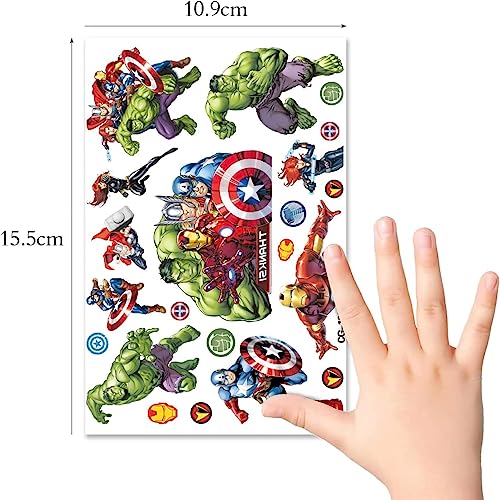 Set di tatuaggi temporanei per bambini per Marvel Avengers, 4 fogli di Superheros, adesivi per sacchetti regalo di compleanno per bambini, pensierini per ragazze e ragazzi...