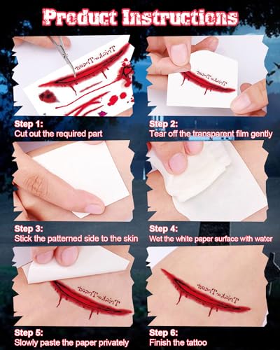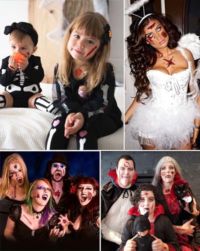 【Sicurezza e alta qualità】 Garantisci la sicurezza e l'alta qualità dei tuoi accessori per feste Halloween con il nostro set eleganti tatuaggi temporanei finti. Questi tatuaggi di Halloween sono atossici, sicuri e innocui per il corpo, il che li rende adatti a uomini, donne e bambini di tutte le età. Che tu stia cercando di completare il trucco del tuo costume Halloween o di aggiungere un po' di divertimento alla tua festa, questi tatuaggi temporanei cicatrici sono perfetti per l'occasione.