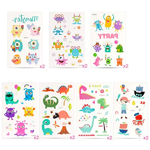 ❤Tatuaggi Temporanei di Dinosauro Animale: Unicorni di personaggi preferiti per bambini, cuori, stelle e adesivi per tatuaggi arcobaleno, ecc. 12 fogli OLTRE 300 disegni colorati per Dinosauro Animale di tatuaggi temporanei per accessori regalo e per feste.