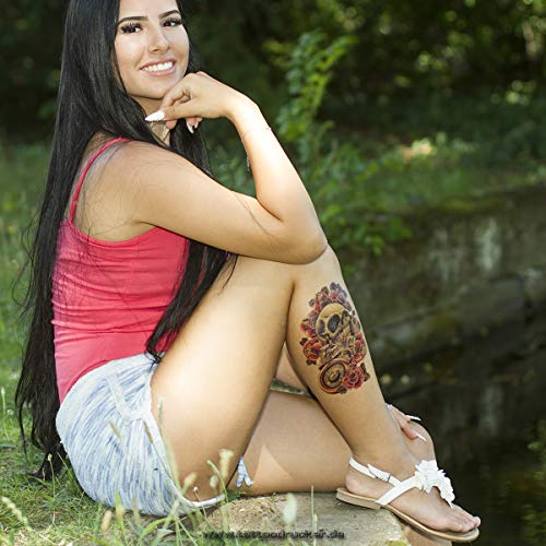1 x Tatuaggio di Halloween per uomini e donne cranio colorato con rose e Libertà autoadesivo del tatuaggio - Skull, Roses, Libertà