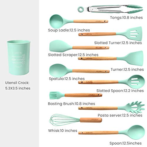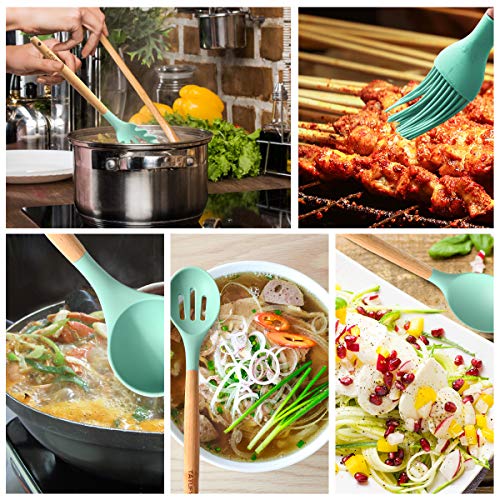 Tatufy Set Utensili da Cucina, Utensili Cucina in Silicone(12 Pezzi), Manico in Legno Duro Utensili da Cucina Termoresistenti Professionali Resistente al Calore e Antiaderente Strumento di Cottura