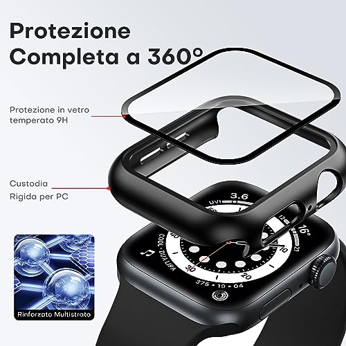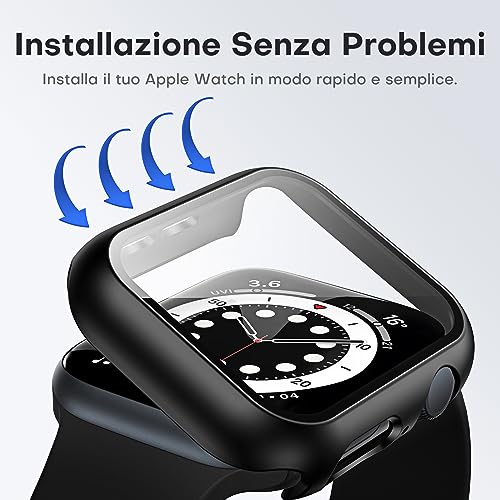 TAURI 2 Pezzi Cover Apple Watch SE 40MM /Serie 6/Serie 5/Serie 4 40MM con Protezione in Vetro Temperato 9H, Tocco Sensibile, Chiaro HD, Design Sottile e Rigido - Nero