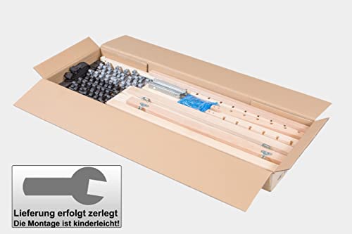 Tauro 22914, Rete con 28 doghe in legno, per letto a 7 zone, testiera regolabile, cintura centrale, 90 x 200 cm, Beige (Natur)