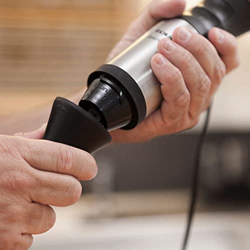 Piede in acciaio amovibile con cui puoi tritare,frullare ed emulsionare rapidamente tutti i tipi di cibo: selettore elettronico con 20 velocità + funzione turbo per ottenere immediatamente la massima potenza