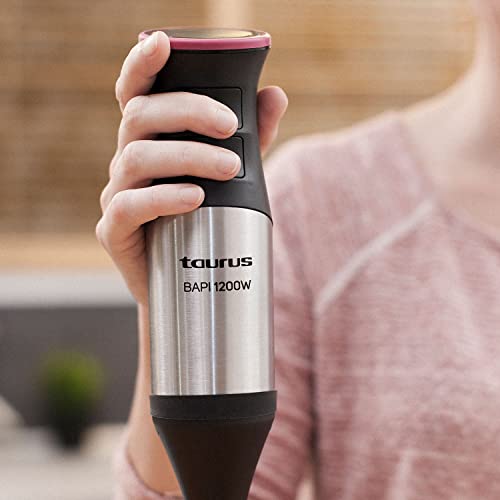 Taurus BAPI 1200 Inox Frullatore a Immersione, Mixer Professionale, Impugnatura in Gomma ergonomica, 1200W di Potenza,Selettore 20 velocità e Turbo, 18/8 Inox, 1 Accessorio, Multicolore