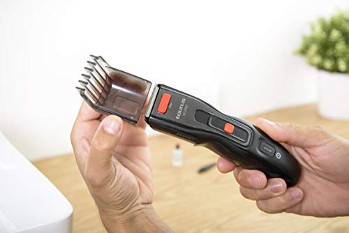 Taurus HC-0150 - Tagliacapelli con 7 altezze regolabili di taglio. Lame in acciaio inossidabile. 1 pettine guida regolabile da 3 a 18 mm. 60 minuti di autonomia. Testa rimovibile. Accessori inclusi.