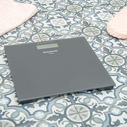 Taurus Vienna Bilancia da bagno digitale, design slim, 28 x 28 x 2 cm, kg/lb, display grande, facile lettura, max 180 kg/min 3 kg, colore: grigio metallizzato