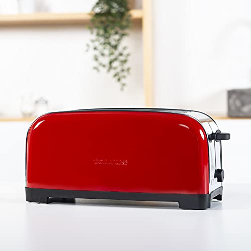 Taurus Vintage Red - Tostapane, 1400W, 6 livelli di doratura, due fessure extra lunghe di larghezza variabile, 3 funzioni, acciaio inossidabile
