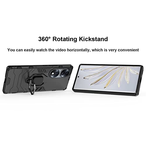 TAUYN Custodia per Honor 70, TPU/PC Antiurto Custodie con 360° Regolabile Anello Magnetica Supporto, Armor Bumper Protezione Case Caso - Nero