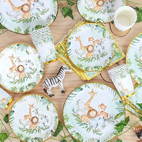 Set da tavola per Feste a Tema Jungle Safari, Feste Compleanno Bambini, stoviglie in Carta, Serve 24 Ospiti, stoviglie per Feste di Animali, Piatti di Carta, tovaglioli per Compleanni, Baby Shower