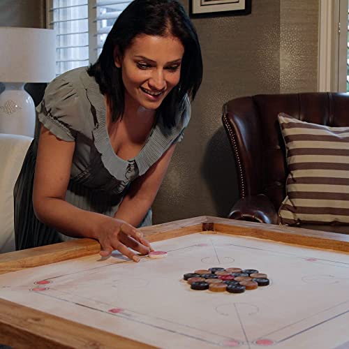 Made in India: tavolo da gioco per Carrom 83 cm x 83 cm con i seguenti dettagli: area di gioco interna da 74 cm x 74 cm (dimensioni ufficiali).