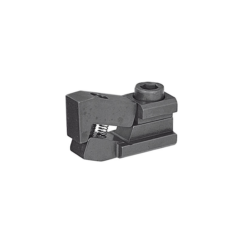Costruzione particolarmente bassa (v. tabella: altezza dal bordo del banco). Se si ribassa la ganascia si può ottenere un'altezza di serraggio ancora più bassa e compensare la tolleranza di profondità della cava a T. Grazie all'effetto cuneo della ganascia, il pezzo viene premuto saldamente sul banco macchina. Uso: Per il serraggio laterale, soprattutto di pezzi bassi, direttamente sul banco macchina. Materiale: Acciaio bonificato e brunito. Fornitura: Con giraviti per viti a testa esagonale ISO 2936 C. Nota: Disponibile solo a coppie! Dati tecnici Tipo di prodotto Dispositivo di fissaggio a compressione Modello 6492 Corsa di serraggio, mm 3 Larghezza scanalatura a, mm 22 Altezza dal bordo del banco h1, mm 4,5 Altezza dal bordo del banco h2, mm 21,5 Possibile ribasso x, mm 9 Altezza H1, mm 20 Larghezza B, mm 35 Lunghezza L, mm 89