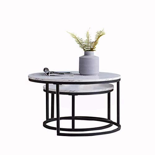 Set di 2 tavolini da salotto rotondi, per salotto, camera da letto, montaggio stabile e semplice