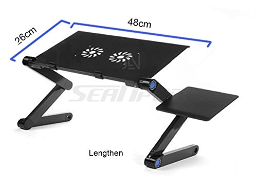 Peso leggero, vassoio di alluminio ad alta resistenza, robuste gambe completamente regolabili - rende il trasporto facile e tiene il computer fermo e stabile. Rotazione di 360 gradi e si blocca in varie angolazioni. Si piega facilmente diventando trasportabile.