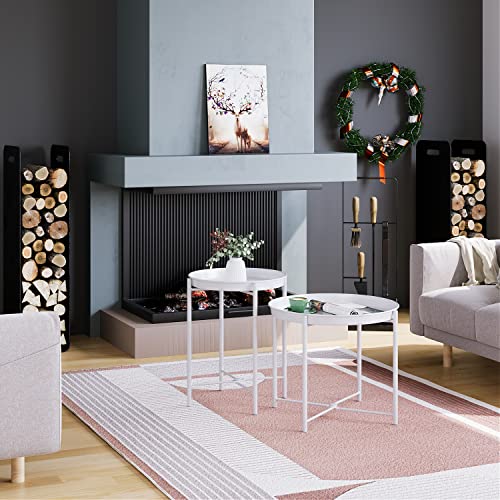 Set di 2 tavolino metallo Tavolino Rotondo Tavolino Laterale Tavolino da Salotto Comodino Tavoline da Caffè Tavolino da Divano Tavoline Salotto 40,8 x 40,8 x 53,5 cm (Bianco)