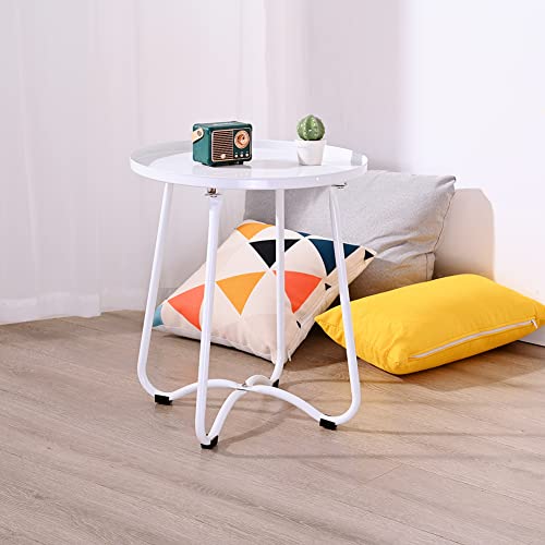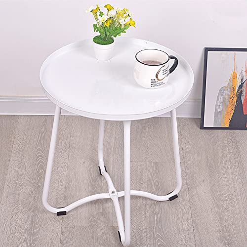 Tavolino rotondo da esterni, tavolino da patio, piccolo in metallo, impermeabile, portatile, per soggiorno, camera da letto, giardino, terrazza, balcone, 41,9 x 49 cm (bianco)