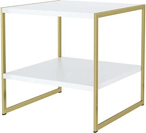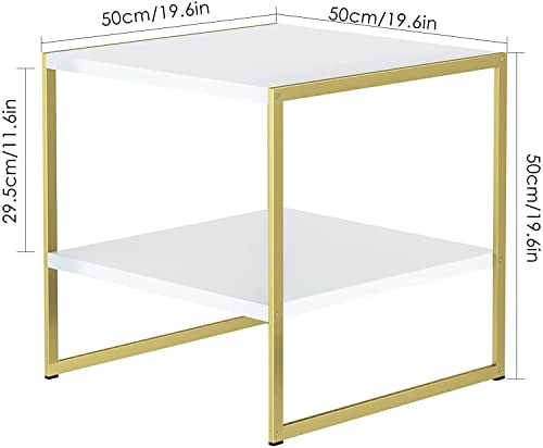 Tavolino da Salotto tavolini in metallo Comodino per Divano Gambe in Metallo Scaffale da Cucina Tavolini da appoggio Tavolino da caffè 50x50x50cm (Bianco+oro)