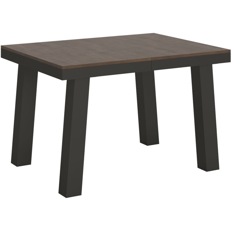 Tavolo allungabile Bridge Evolution da 120 cm, dal design industriale, si adatta a qualsiasi stile di arredamento e si rivela la scelta ideale sia come tavolo da pranzo che come elemento d'arredo per il soggiorno, dove poter accogliere i propri ospiti con stile. Il tavolo allungabile Bridge Evolution è in grado di estendersi progressivamente fino a 380 cm capace di ospitare 16 persone. Realizzato con pannelli in nobilitato, telaio e gambe in ferro. Il sistema di estensione con guide telescopiche in alluminio e i sostegni laterali in dotazione rendono il tavolo stabile e robusto anche se totalmente allungato. Due allunghe sono alloggiate sotto il piano pronte all'utilizzo mentre le rimanenti tre vanno riposte altrove. Prodotto Itamoby Made in Italy Dimensioni: Tavolo chiuso: L.120 P.90 H.77 cm Lunghezza con 1 allunga: 172 cm Lunghezza con 2 allunghe: 224 cm Lunghezza con 3 allunghe: 276 cm Lunghezza con 4 allunghe: 328 cm Lunghezza con 5 allunghe: 380 cm