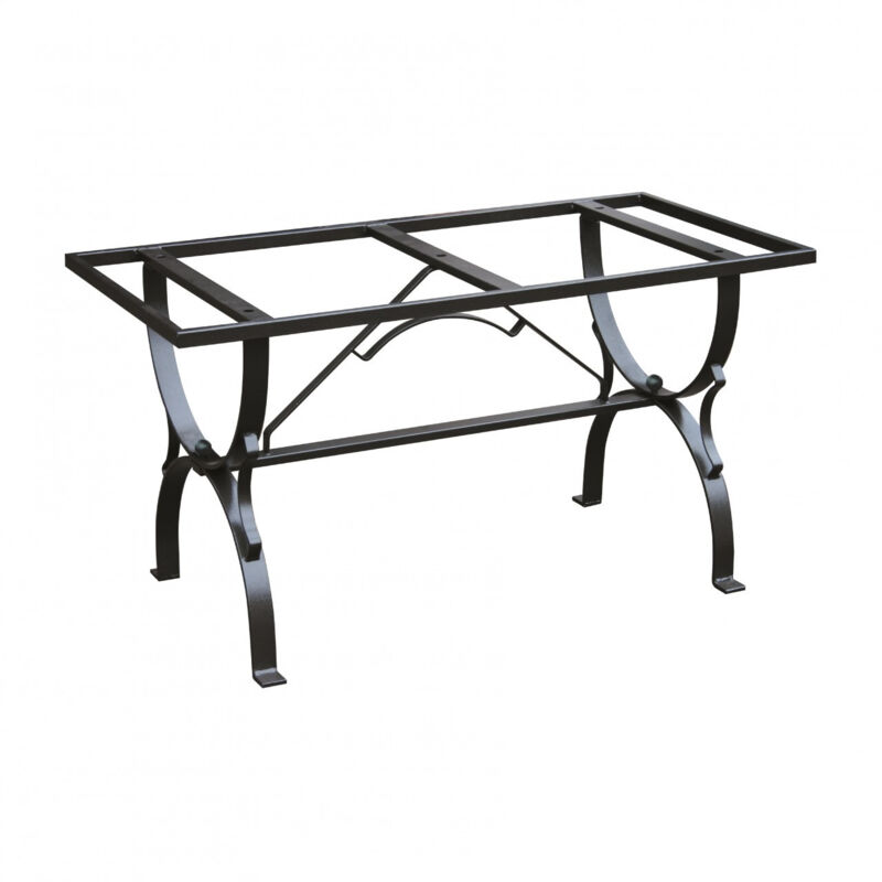 Tavolo base in ferro battuto cm 140x60x75h - Modello Serapio l tavolo base in ferro battuto modello Serapio è un'opera d'arte che unisce funzionalità e bellezza. Questa base per tavolo è realizzata interamente in ferro piatto spesso 50x10 mm, che gli conferisce una robustezza e una stabilità senza pari. Il ferro è stato lavorato a mano da artigiani esperti, il che gli conferisce un'unicità che difficilmente si trova in altri prodotti simili. La base è disponibile in diverse misure per soddisfare le esigenze dei clienti, ma la versione standard ha dimensioni di cm 140x60x75h. La parte superiore della base è realizzata in una culla a triplo rinforzo trasversale, che garantisce la massima resistenza e stabilità del tavolo. Le quattro zampe a omega imbullonate al vertice completano la struttura del tavolo base in ferro battuto modello Serapio. Queste zampe sono saldamente sostenute e saldate alla parte superiore del tavolo, assicurando una base solida e resistente per il piano del tavolo.