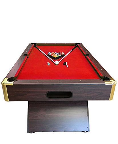 CARATTERISTICHE TECNICHE Colore: Testa di moro con panno di colore Rosso Misure: 7 piedi (misure di gioco 188 cm x 94 cm) Peso: 120 kg Dimensioni: 213 cm lunghezza x 121 cm larghezza x 80 cm altezza diametro buche 10 cm Piedi regolabili in altezza per regolazione tavolo in Bolla Le palline vengono recuperate tutto in automatico nel lato corto