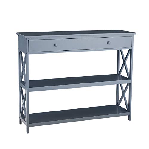 Tavolo consolle, tavolo da salotto, tavolo da ingresso a 3 livelli, design classico a X, con cassetto, montaggio sottile e semplice, grigio