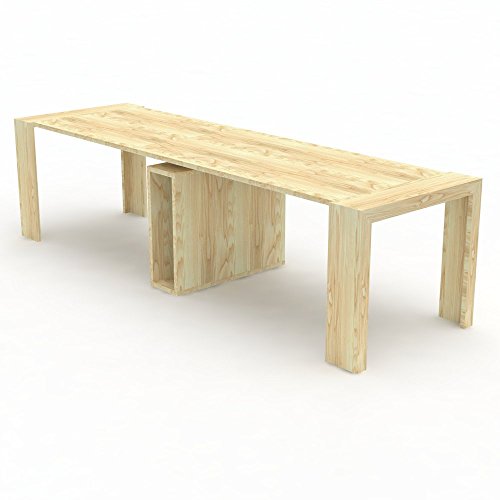 Tavolo per esterno consolle allungabile con porta prolunghe - da 40 cm a 200 / 250 / 300 cm, in abete lamellare idrorepellente - arredo giardino (Abete naturale, allungabile da 40 a 300 cm)