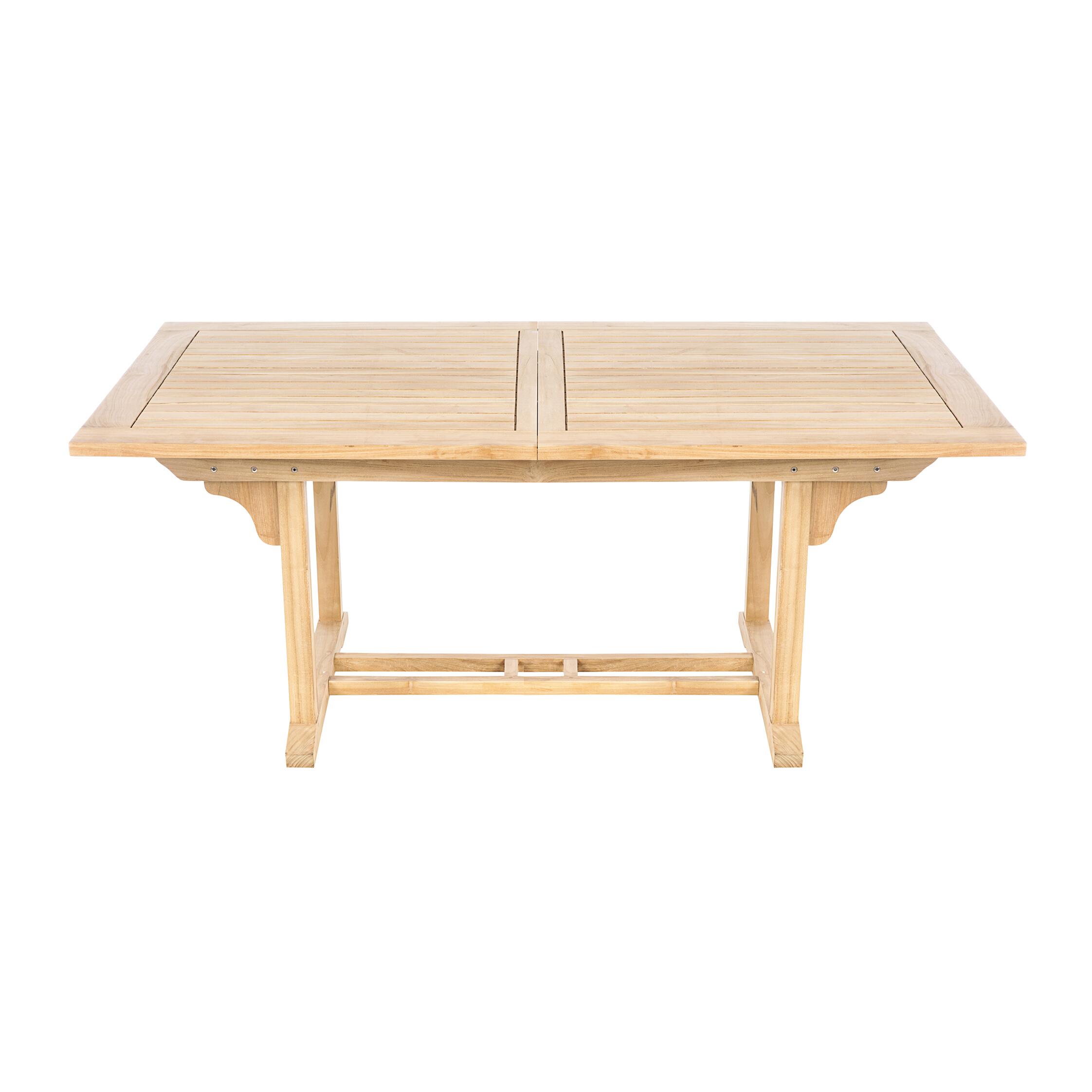 In teak allungabile da 170 a 220 cm.. Ideale per ambienti spaziosi, terrazze e giardini. Resistente alla ruggine e alle deformazioni dovute agli agenti atmosferici. Versatile, grazie alla prolunga permette di ospitare ancora più persone