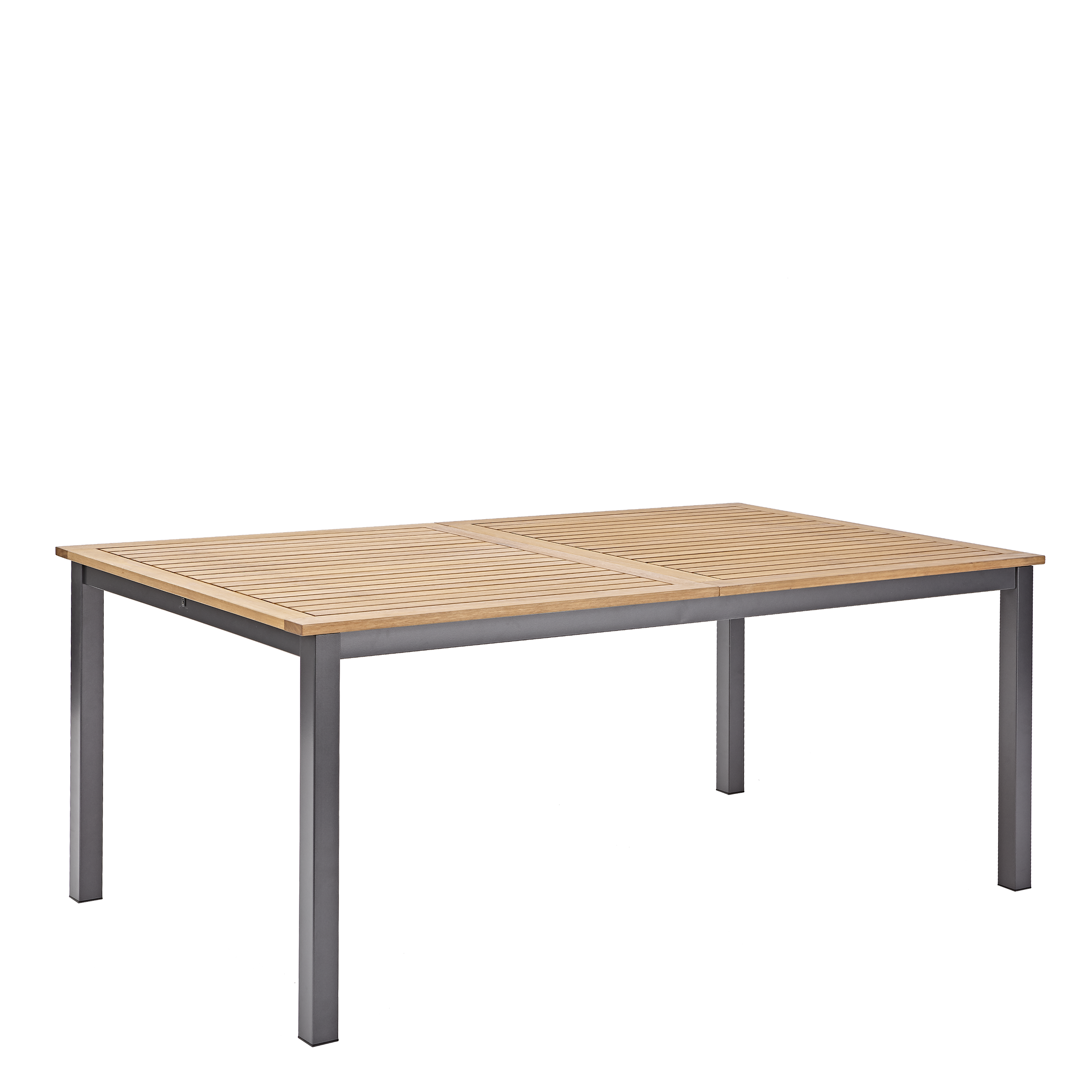 Piano in legno di eucalipto, allungabile fino a 240 cm. Struttura in alluminio, leggere e resistente alla ruggine. Può ospitare da 6 a 10 persone, adatto ad ambienti grandi e spaziosi come giardini e verande o terrazze particolarmente ampie. Versatile, grazie alla prolunga permette di aggiungere 4 posti. L'etichetta FSC permette di fare una scelta consapevole per prodotti che sono ottenuti da una gestione dei boschi ecologicamente appropriata