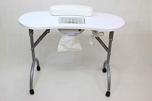 Tavolo manicure pieghevole e portatile con aspiratore 2800 rpm e comoda borsa da trasporto. Realizzato con i migliori materiali. Sarà possibile richiuderlo ogni volta che vorrete recuperando utilissimo spazio. Al centro del tavolo è posizionato un comodo cuscino poggiamani. Le ruote sono girevoli a 360° con sistema di bloccaggio.