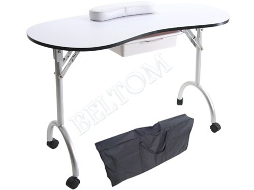 Tavolo manicure pieghevole e portatile con cassetto e comoda borsa da trasporto.