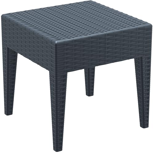 CLP Tavolo Polirattan Miami per Giardino - Tavolino Quadrato Impilabile da Appoggio per Balcone - Tavolo Basso da caffè in Polipropilene Polyrattan Grigio Scuro 45 x 45 cm