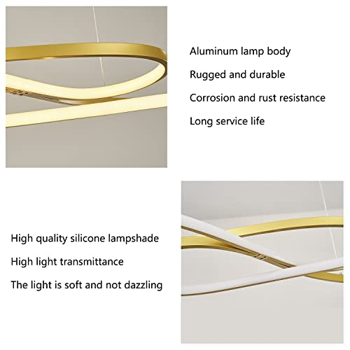 LED Tavolo Pranzo Lampada a Sospensione Lampadari Moderni Anello Design - Oro Plafoniera Dimmerabile con Telecomando per Cucina Camera da Letto Salotto Cameretta Soggiorno (Oro)