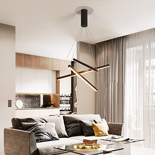 ✔ Design: Moderna lampada a sospensione a LED per tavolo da pranzo, corpo lampada rettangolare a 3 luci, il corpo della lampada entrambe le estremità sono attaccate e sospese, che emette luce diretta verso il basso. Una bella luce può rendere il cibo più attraente