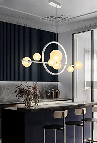 Tavolo da Pranzo Lampadario Lampada a Sospensione da Tavolo da Pranzo con Sfera di Vetro Lampadario a Sospensione Moderna Regolabile con Paralume a LED a Bolle Lampadina G9 4500K ( Color: White 7ligh