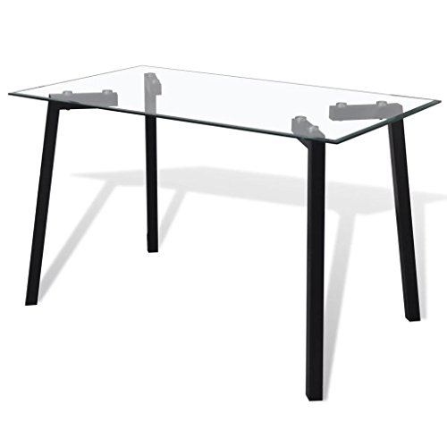 Tavolo da Pranzo Piano Superiore in Vetro Trasparente e Gambe Acciaio