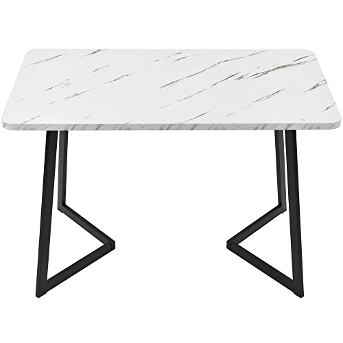 I0I&I0I Tavolo da pranzo rettangolare effetto marmo con gambe in metallo per sala da pranzo e soggiorno, design moderno, piano in MDF, struttura in metallo stabile (nero/bianco)