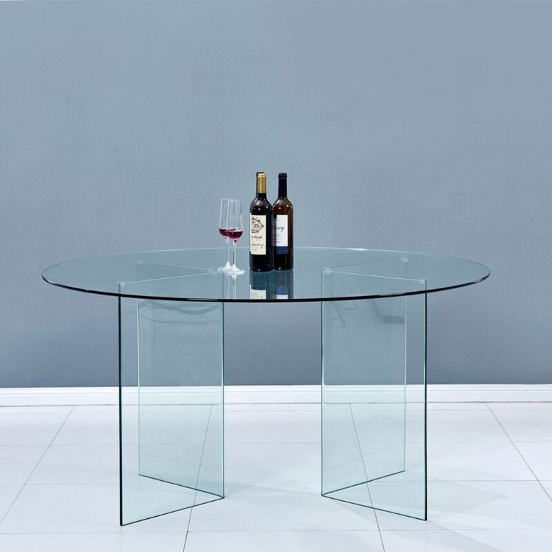 Tavolo rotondo in vetro trasparente temperato Acacia 137x137x77H Immagina di accogliere i tuoi ospiti attorno a un tavolo che sia espressione di eleganza e modernità allo stesso tempo. Il Tavolo rotondo Acacia in vetro temperato è la scelta ideale per chi desidera un complemento d'arredo versatile, adatto sia agli ambienti domestici che a quelli lavorativi di alto livello. Lasciati conquistare dalla bellezza del piano in vetro temperato trasparente, che dona luminosità e ampiezza a qualsiasi ambiente. Lo spessore di 10 mm garantisce robustezza e resistenza, mentre le gambe triangolari in vetro temperato da 12 mm offrono un solido supporto e un design ricercato. Con il suo diametro di 137 cm e l'altezza di 77 cm, il Tavolo rotondo Acacia può ospitare comodamente fino a 6 persone, diventando il protagonista indiscusso di pranzi e cene in compagnia. La sua forma rotonda favorisce la conversazione e la convivialità, creando un'atmosfera accogliente e inclusiva. Caratteristiche: Tavolo